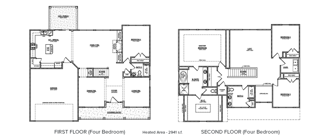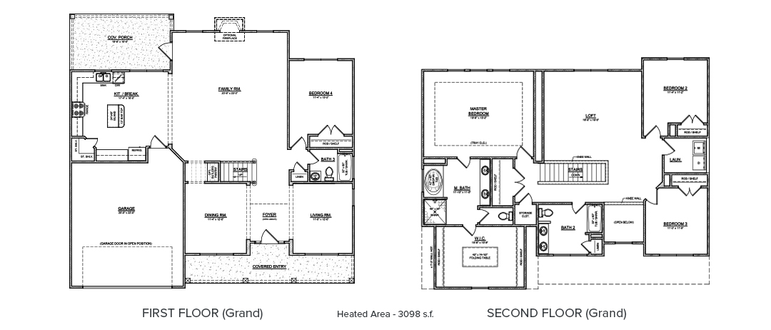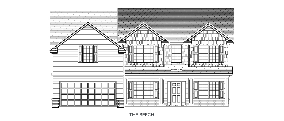 The Beech floor plan comes in a 4 or 5 bedroom configuration with 3 baths and a total of 3,098 heated square feet.  This plan has a bedroom on the bottom floor for your guests/mother-in-law and a luxurious master suite upstairs for you complete with our signature closet which includes a center island and glamorous chandelier.